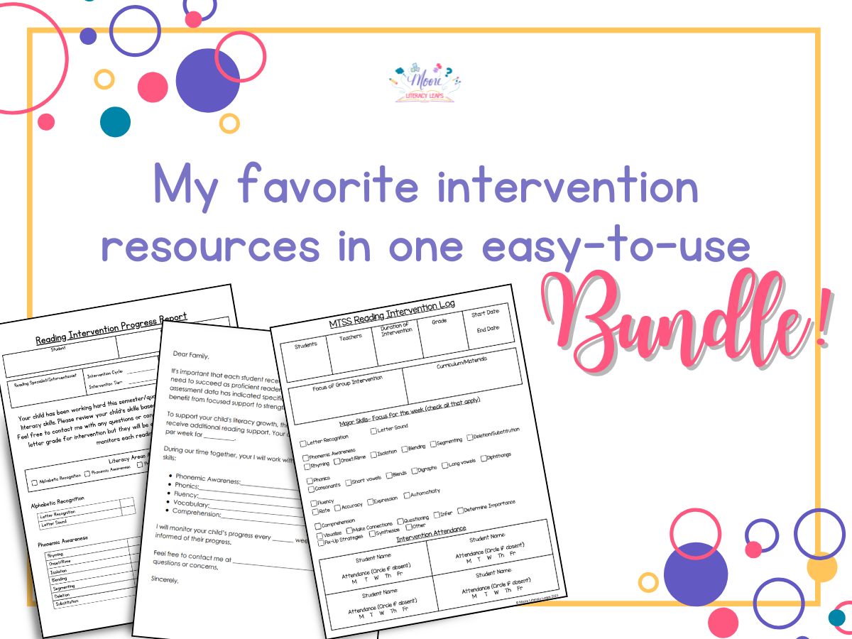I put all of my favorite reading intervention tools into one easy-to-use bundle that includes not only documents to help track and monitor progress monitoring data, but this bundle also includes some of my favorite assessments that can be used for progress monitoring and other resources to streamline and simplify your reading interventions.