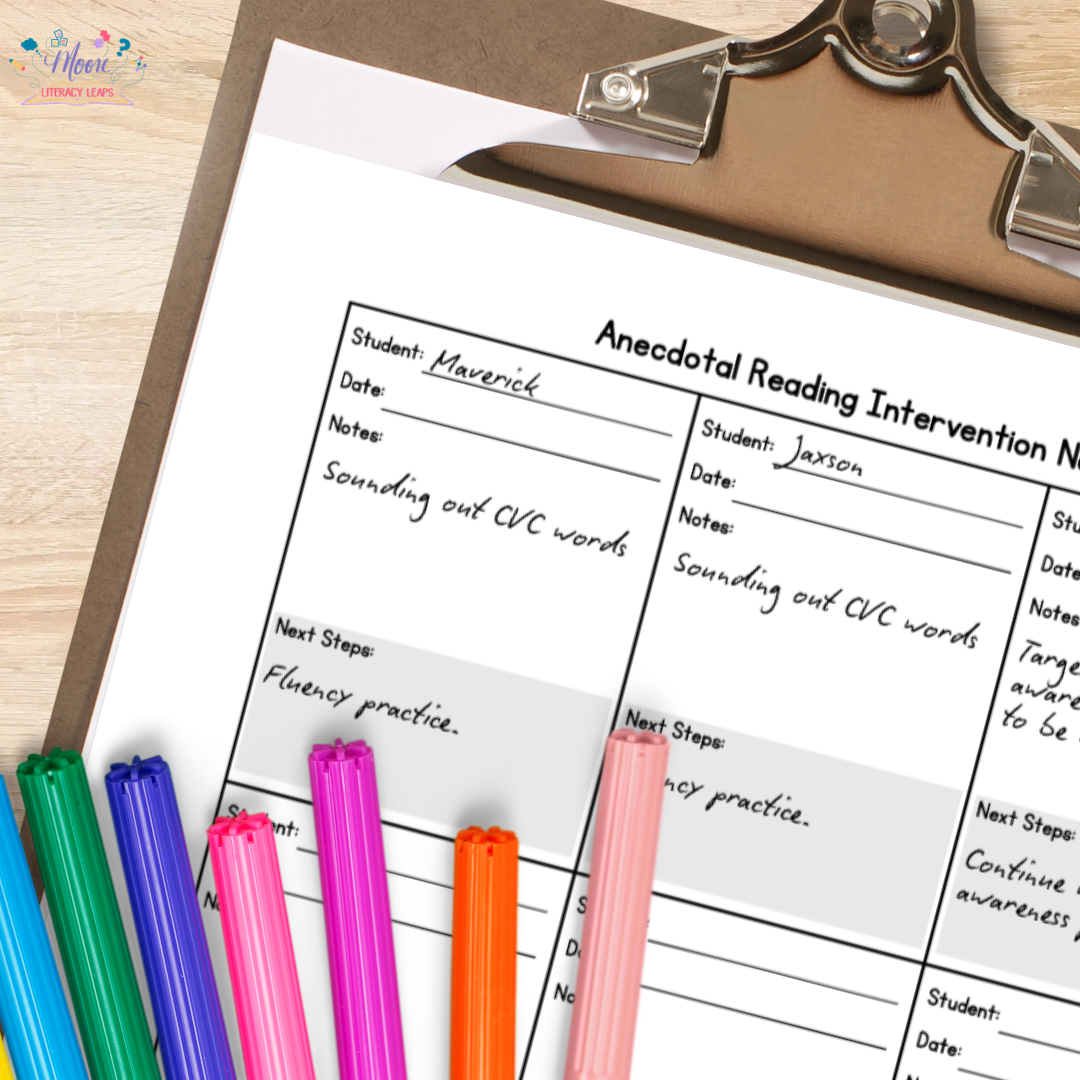 Click here to grab my Anecdotal Reading Intervention Note Sheet and stay organized for your next MTSS meeting.